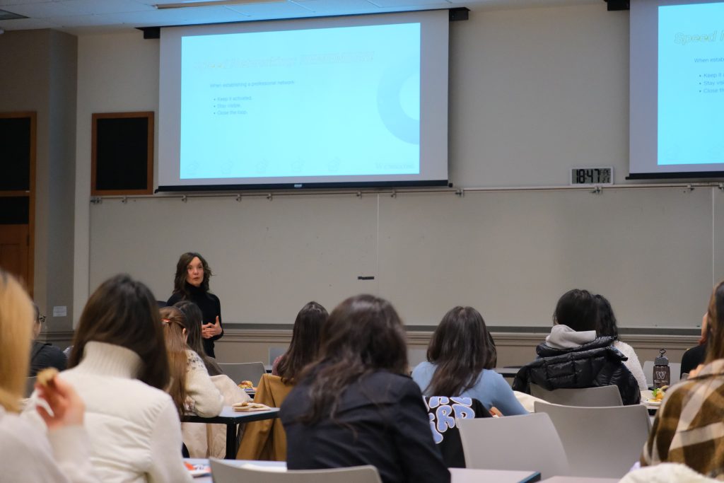 By the end of the session, students walked away not only with a stronger elevator pitch, but also with greater confidence in their ability to show up, speak up, and make meaningful connections – one conversation at a time.