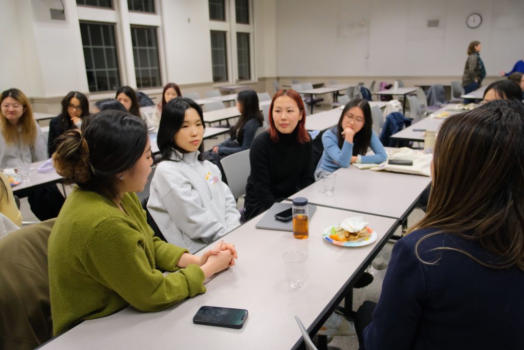 During the session, Dana invited mentors to share situations where they’ve used elevator pitches – from presenting ideas to faculty and interviewing for jobs to unexpected professional encounters. Students heard Hedy Li’s story about giving her first presentation in the U.S., where she felt extremely nervous and overwhelmed – feelings she admitted still surface today, even with experience. Priyanka Jain and Mihye Chung also shared how unfamiliar and intimidating networking once felt, and how it has now become part of their daily professional lives.